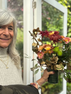 Great fun and fun learning together was our focus using local foliage, beautiful flowers, and re-purposed vases from the OGC shed!